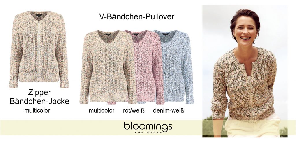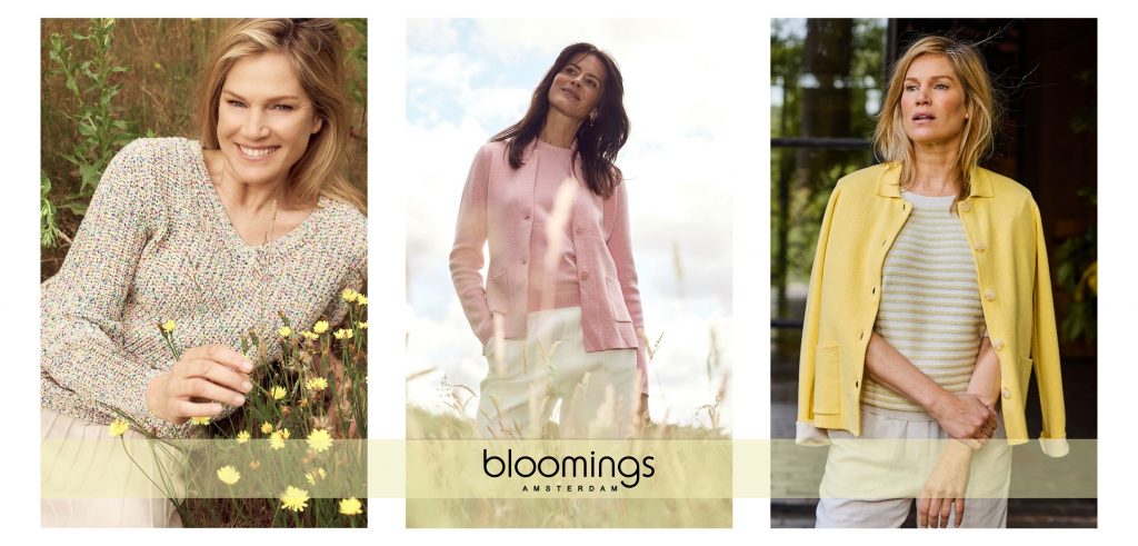Die Marke steht für moderne, unkomplizierte Styles, die jede Frau im Alltag begleiten. Inspiriert vom entspannten Amsterdamer Lebensgefühl verbindet Bloomings hochwertige Materialien, klare Farben und feminine Schnitte zu Strickteilen, die sich wunderbar kombinieren lassen.